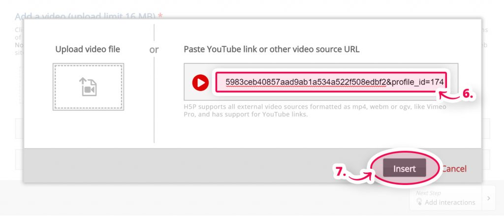 Krok 6: Wklej link skopiowany z vimeo