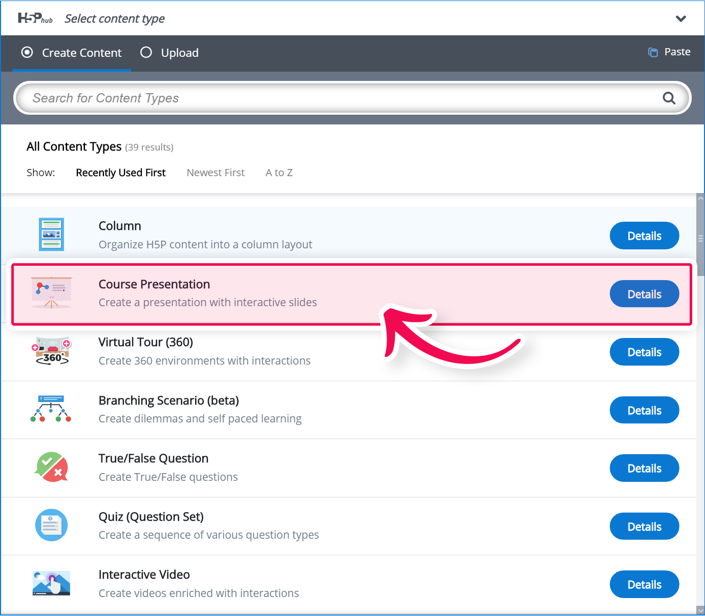 Wybierz Utwórz nowy a następnie wybierz Course Presentation.