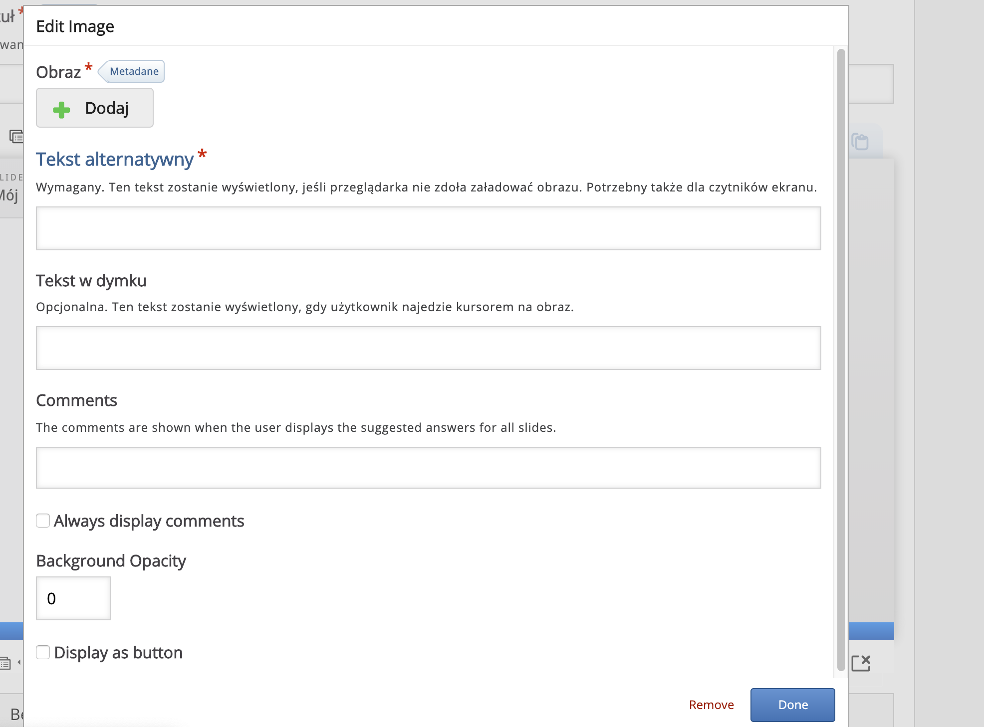 Kliknij “Dodaj” a następnie wpisz tekst alternatywny.