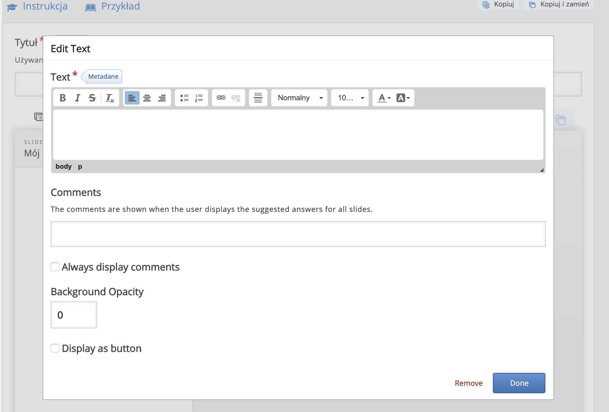 1. Przejdź do edycji modułu  –  H5P Hub.Course Presentation