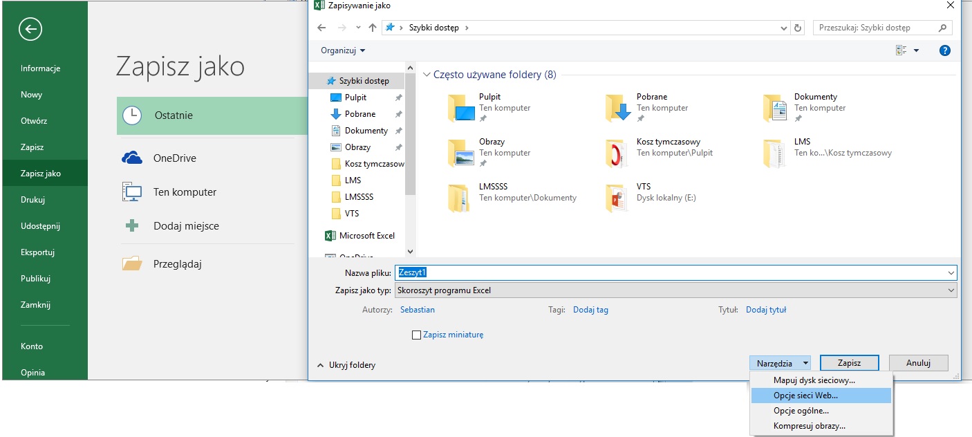 1. Należy w otwartym pliku Excel kliknąć Plik > “Zapisz jako”.