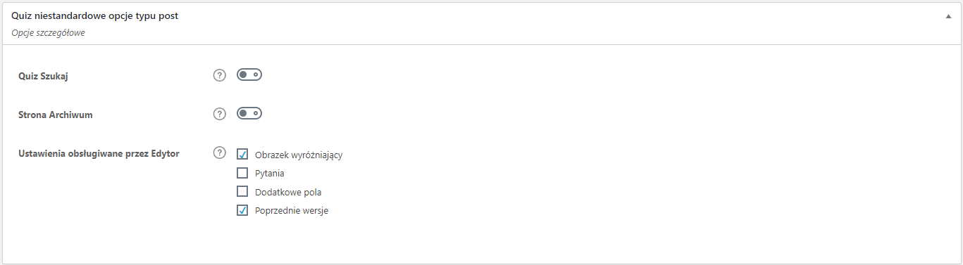 Quiz niestandardowe opcje typu post